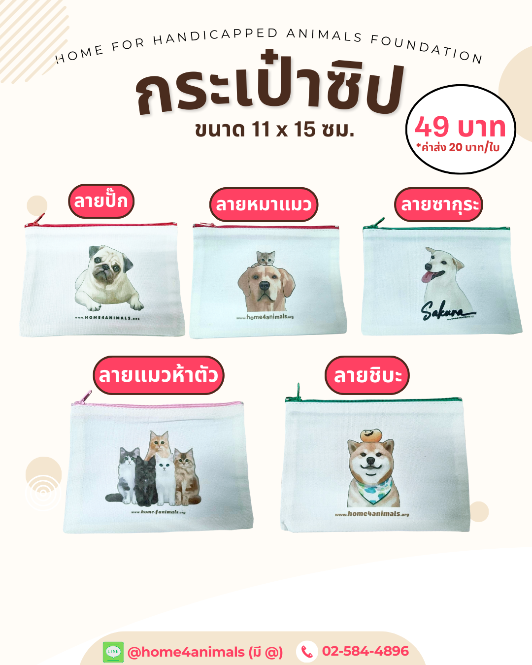 กระเป๋าซิป ขนาดสินค้า กว้าง 11 x ยาว 15 cm.