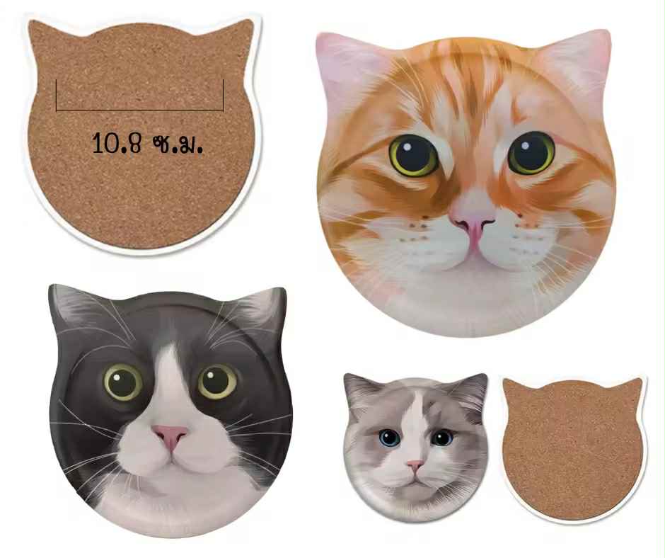 วัสุดุเป็นแผ่นหินรองแก้ว มีแผ่นไม้ก็อกกันลื่นใต้จานรอง ดูดซึมน้ำได้ดี ขนาดเส้นผ่าศูนย์กลาง 10.8 ซม.