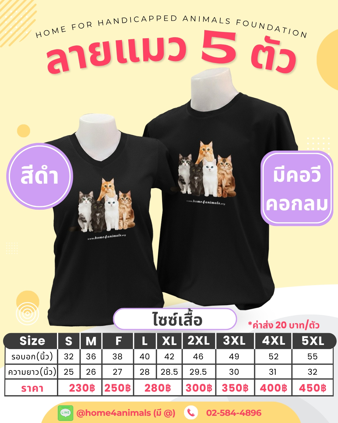 เสื้อยืดการกุศลมี แบบ คอกลม , คอวี   ทรงเสื้อเป็นทรงตรง ใส่ได้ทั้ง ช/ญ
